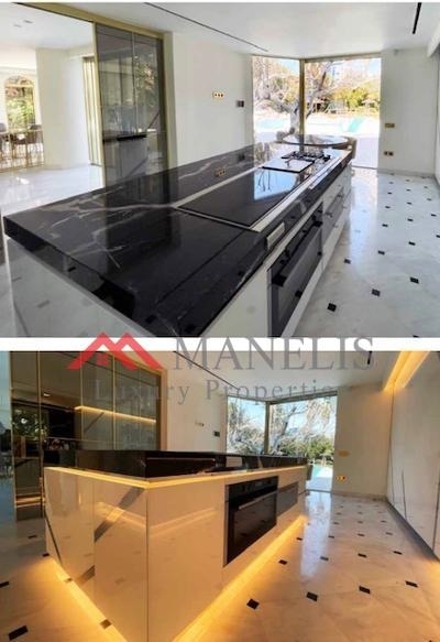 Glyfada, Detached house For Sale, 750 sq.m., In Plot 3000 sq.m., Property Status: Amazing, Floor: Ground floor, 3 Level(s), 6 Bedrooms (3 Master), 2 Kitchen(s), 6 Bathroom(s), 1 WC, Heating: Personal - Petrol, View: Sea view, Energy Certificate: A, 10 parking(s), Floor type: Marble, Type of door frames: Aluminum, Features: Elevator, Security door, Security alarm, CCTV, Storage room, Fireplace (3), Jacuzzi, Electric Appliances, Playroom, Safe Box, Internal Staircase, Triple Glazed Windows, Window Screens, Balconies, BBQ, For Investment, Luxury, Mansion, Airy, Roadside, Bright, Underfloor, AirConditioning, Solar water system, Boiler, Grass, Automatic Watering, Trees, Swimming pool, Back yard (Garden), Price: 27.000.000€. Manelis Luxury Properties, Tel: 6984194332, email: